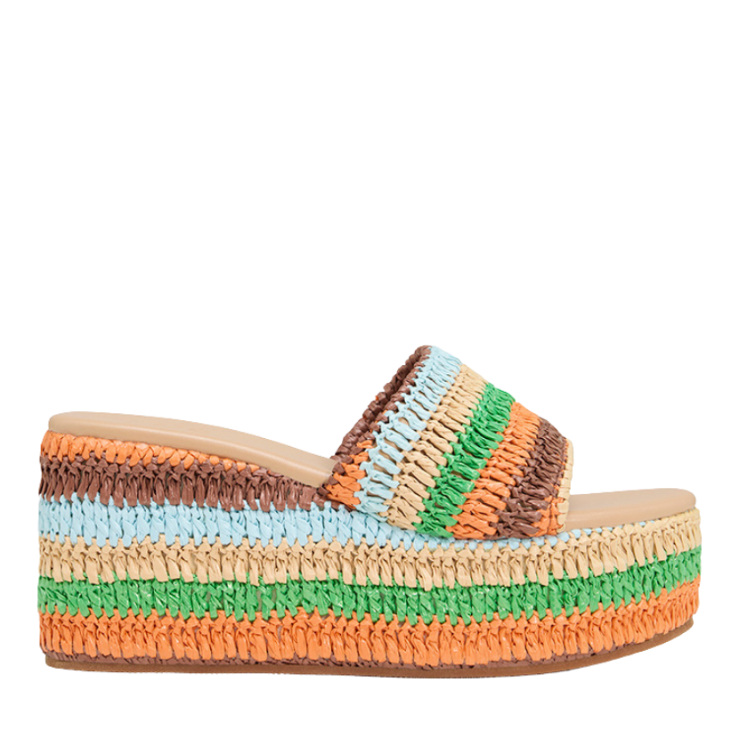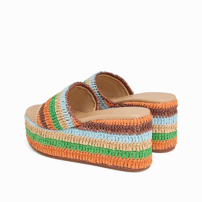 We’re adding that extra touch of Summer romance to your life with The Elle. Designed on nostalgia, The Elle is totally 00s. The wedge is woven raffia and gives the illusion of height without compromising on comfort. To add to the ultimate cool factor, The Elle is vegan friendly too.