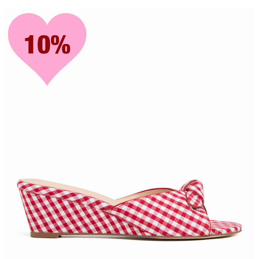 Designed to capture the ease of slow Parisian mornings with her gingham fabrication, The Ellie embodies effortless femininity through its soft knot detail and sculpted wedge. A rubber sole ensures comfort and longevity, made for coffee to cocktails.