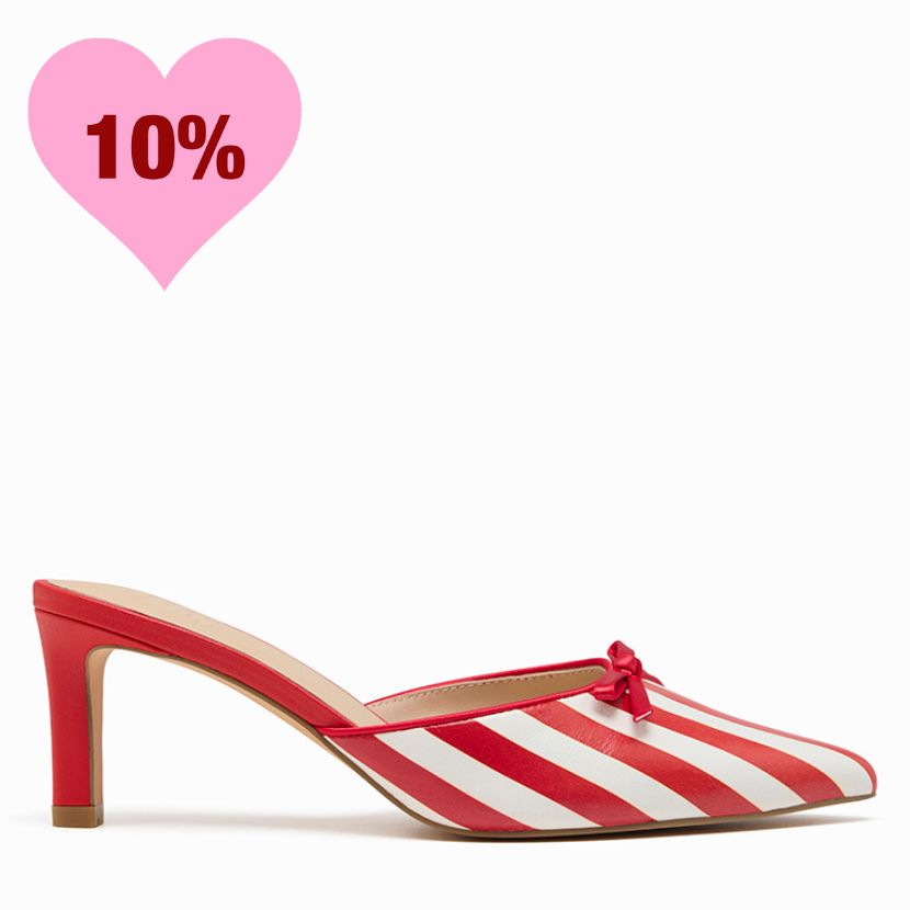 Bold design meets Parisian refined elegance in The Lisa. This pointed-toe, mid heel in a vibrant red and white stripe, is reminiscent of time spent in charming Parisian sunlit streets and café-lined boulevards.