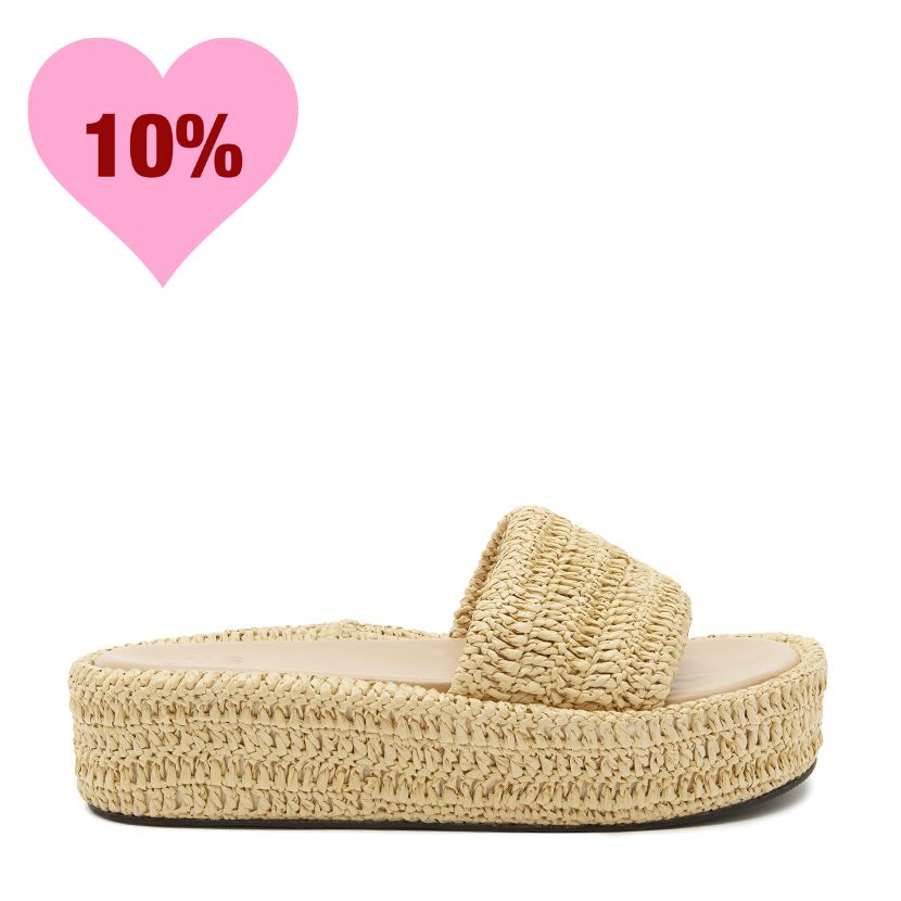 Embody your favourite rom-com IT girl and slip into the ultimate Summer flatform slide. Showcasing a woven raffia material & thick strap, The Mary will quickly transform your outfit from standard to statement. Available in an array of sweet sorbets synonymous to the 00s rom-com fashions. Everyone will see you in The Mary and want them too! To add to the ultimate IT girl factor, The Mary is vegan friendly too. Now that’s fetch!