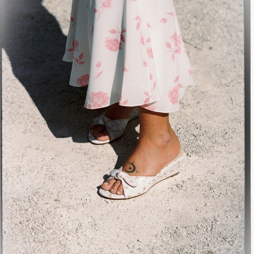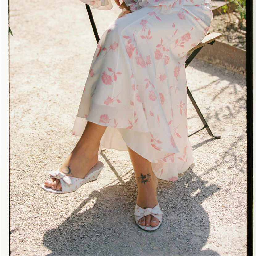 Designed to capture the ease of slow Parisian mornings, The Ellie embodies effortless femininity through its soft knot detail and sculpted wedge. A rubber sole ensures comfort and longevity, made for coffee to cocktails.