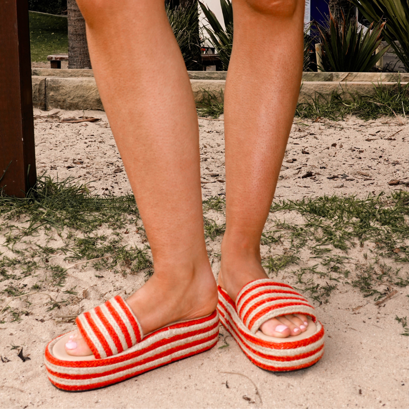Embody your favourite rom-com IT girl and slip into the ultimate Summer flatform slide. Showcasing a Jute Rope material & thick strap, The Mary will quickly transform your outfit from standard to statement. Everyone will see you in The Mary and want them too! To add to the ultimate IT girl factor, The Mary is vegan friendly too. Now that’s fetch!