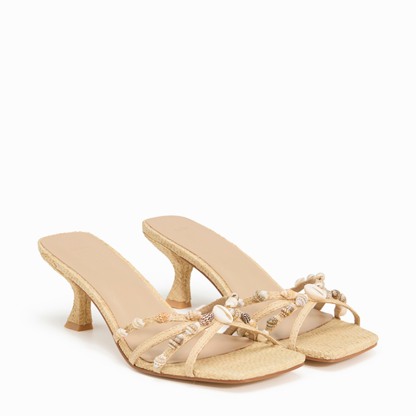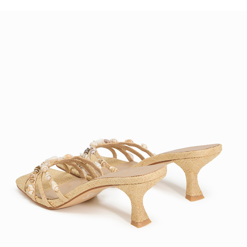The Yumi combines refined femininity with bold, contemporary design. Her delicate straps provide a secure, flattering fit, while her softly flared heel and rubber outsole offer stability and everyday height. Her cushioned innersole supports the foot for all-day wear, ensuring comfort without sacrificing style. Finished with shell embellishments on a rattan silhouette, this limited-edition mule adds a subtle touch of elegance to any outfit.
